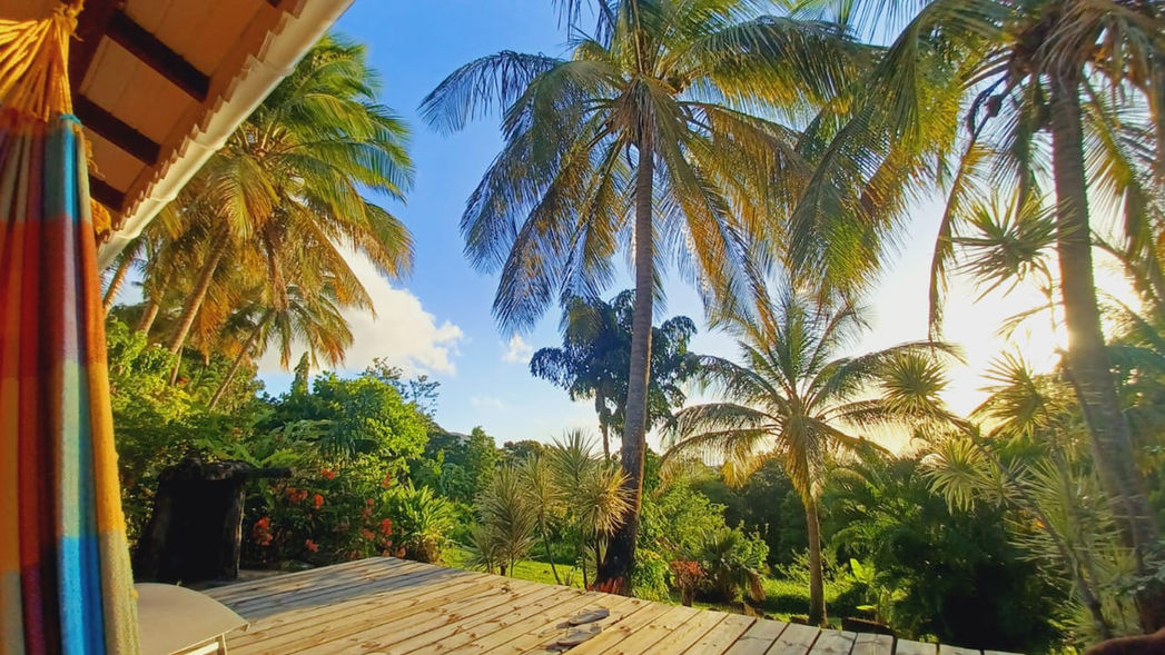 Bungalow indépendant dans le domaine d'Acomat-Bellevue (partenaire kazAnne). Place de parking privée de plein pieds vers la cuisine avec une jolie vue mer des Caraïbes. Le mieux pour les familles avec bébés.
